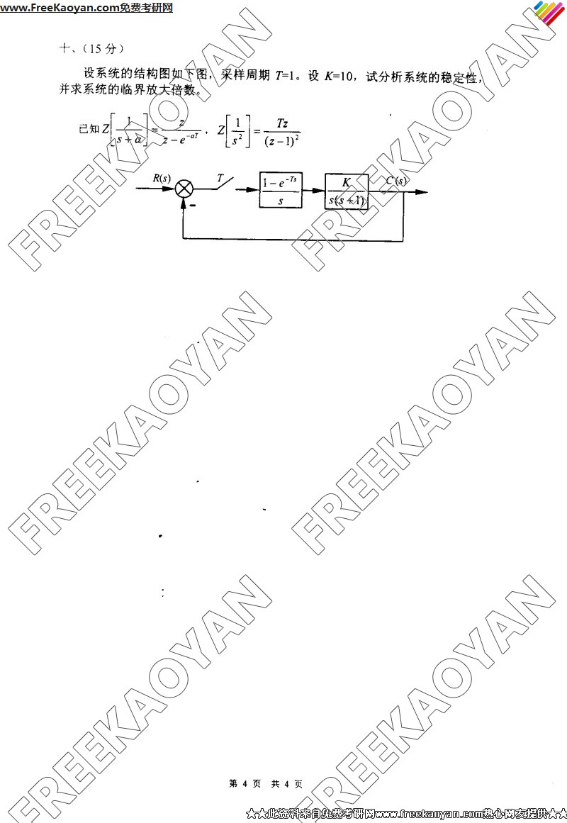 专业课考研经验 本站小编 FreeKaoyan 2018-01-23南京理工大学2005年考研真题-控制理论基础