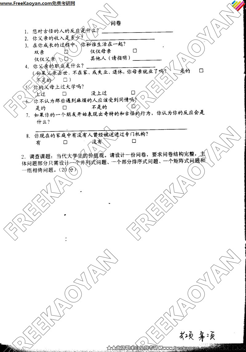 南京理工大学2005年考研真题-社会调查(2)