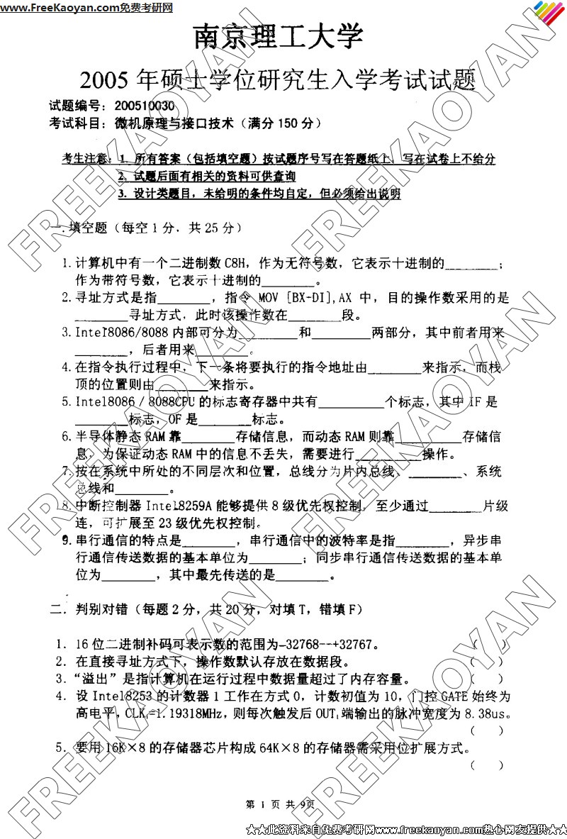 相关话题/南京理工大学 考研真题 微机原理与接口技术