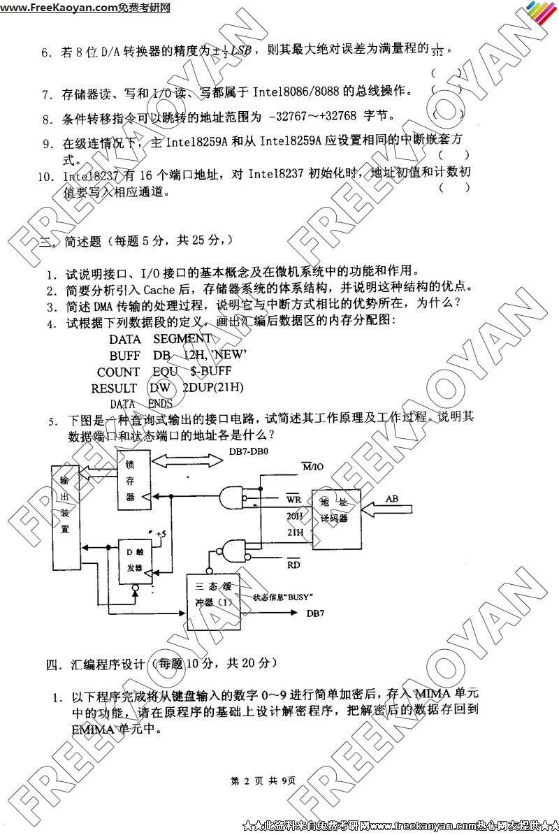 相关话题/南京理工大学 考研真题 微机原理与接口技术