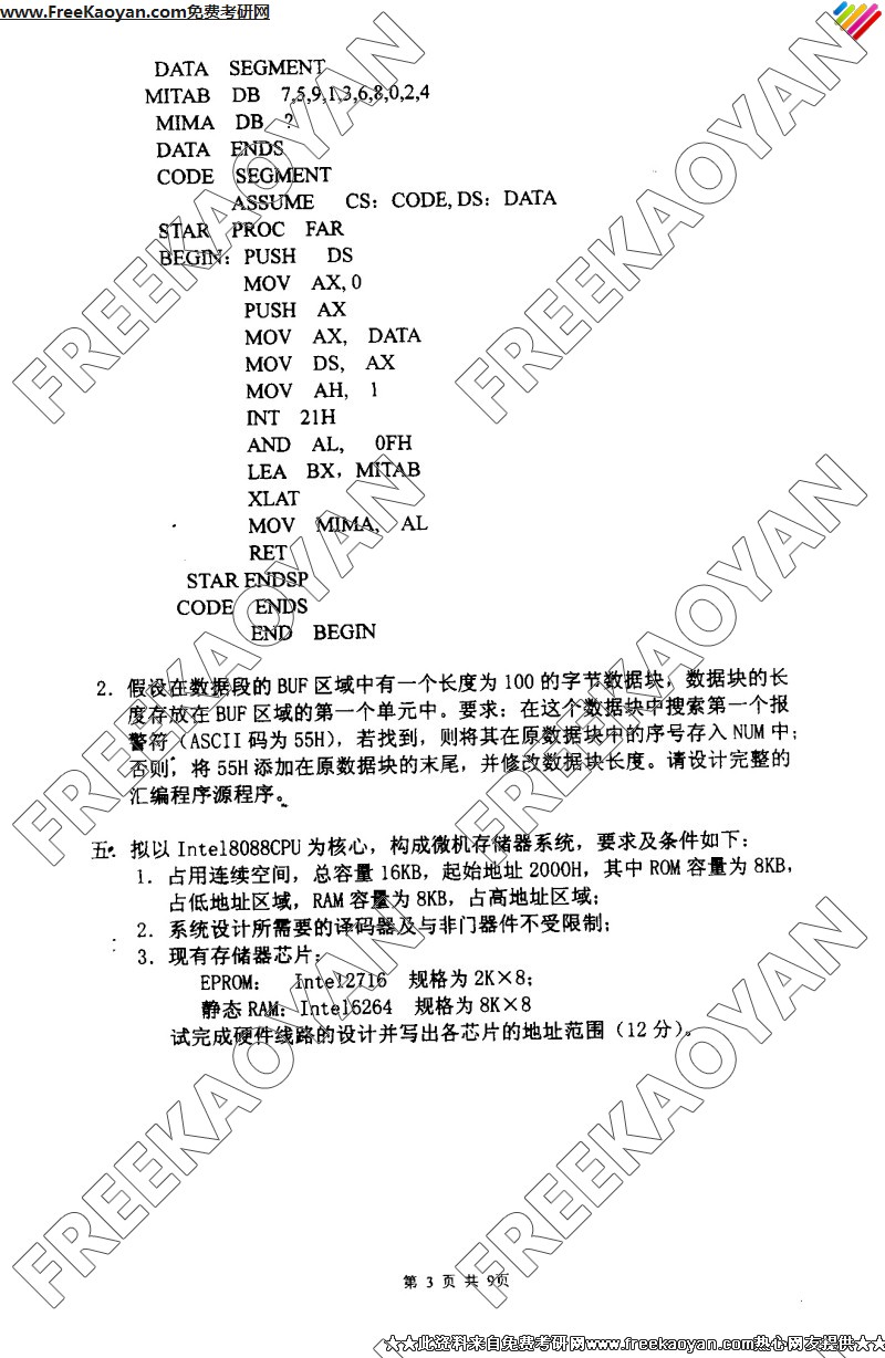 南京理工大学2005年考研真题-微机原理与接口技术(3)