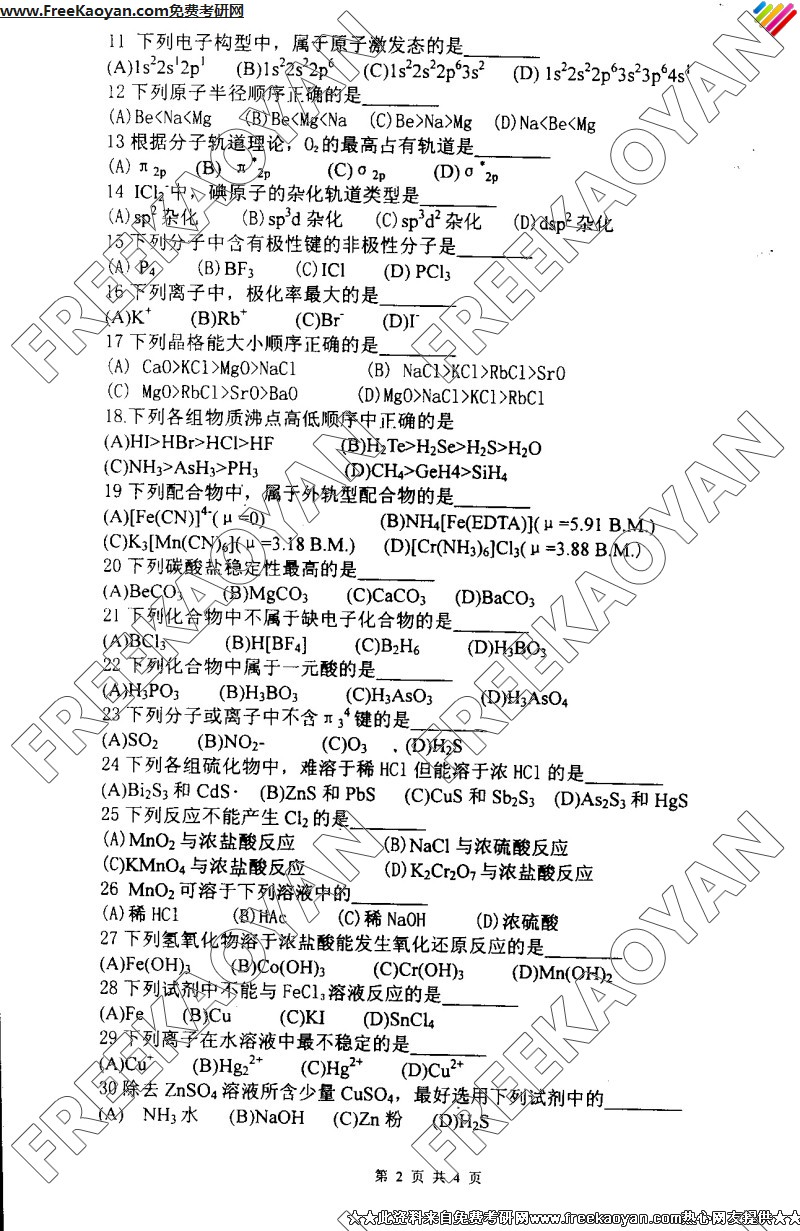 相关话题/南京理工大学 考研真题 无机化学