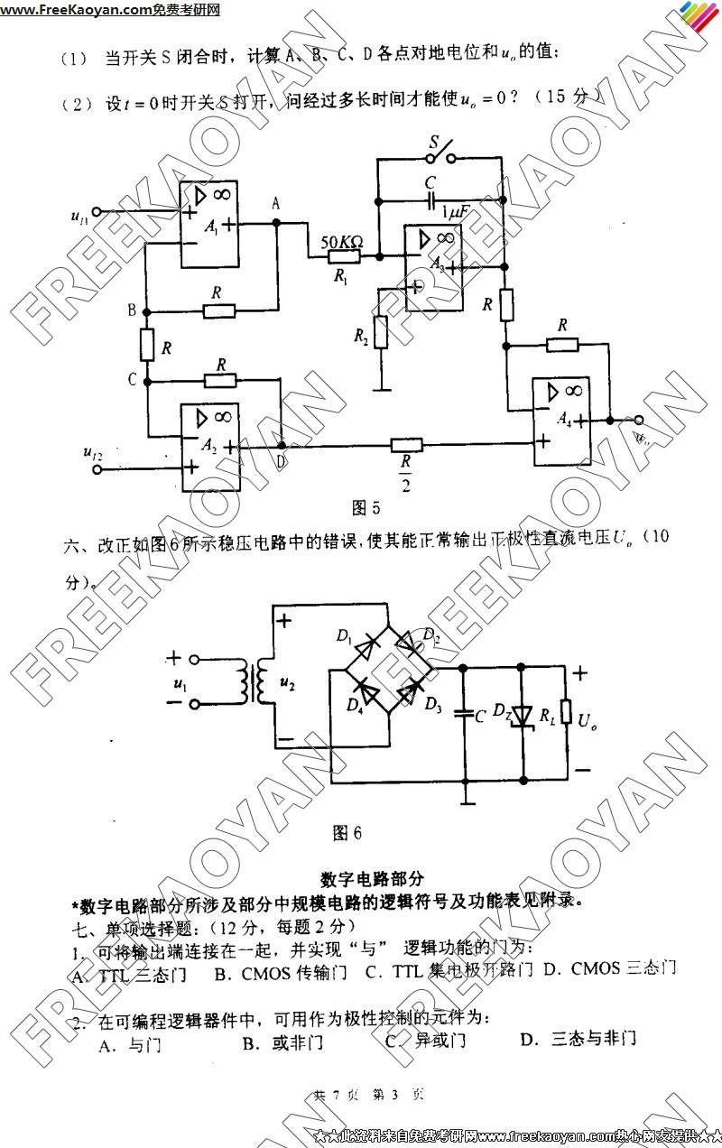 专业课考研经验 本站小编 FreeKaoyan 2018-01-23南京理工大学2005年考研真题-信号与系统、数字电路