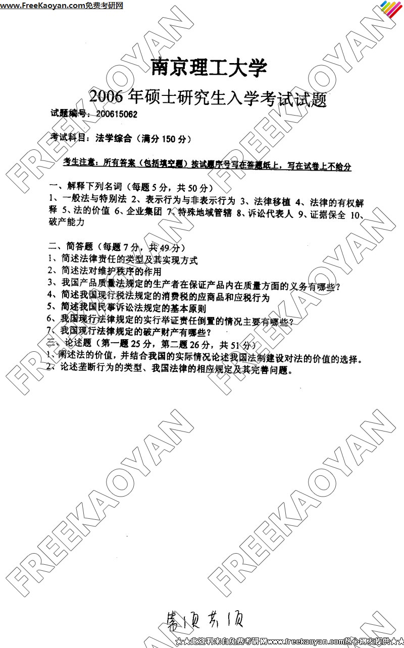 专业课考研经验 本站小编 FreeKaoyan 2018-01-23南京理工大学2006年考研真题-安全系统工程