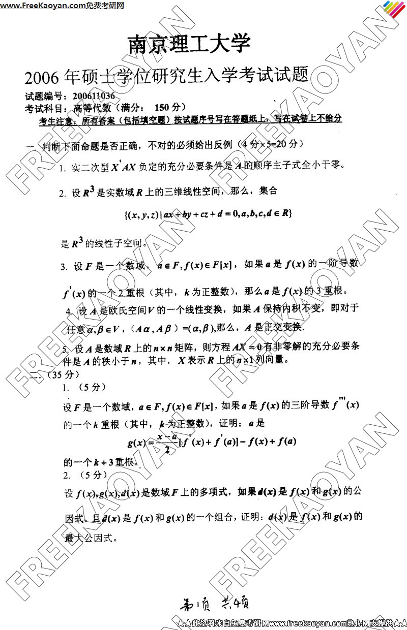 专业课考研经验 本站小编 FreeKaoyan 2018-01-23南京理工大学2006年考研真题-法学综合