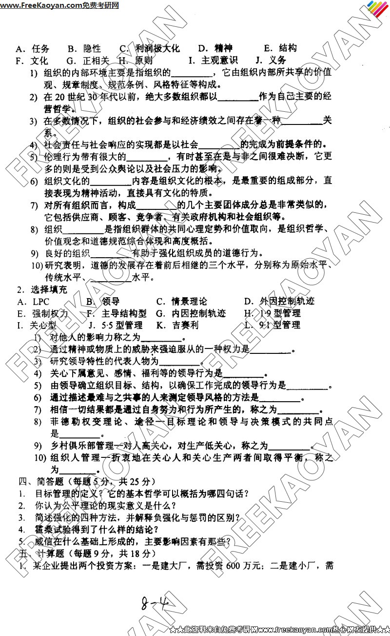 相关话题/南京理工大学 考研真题 管理学原理