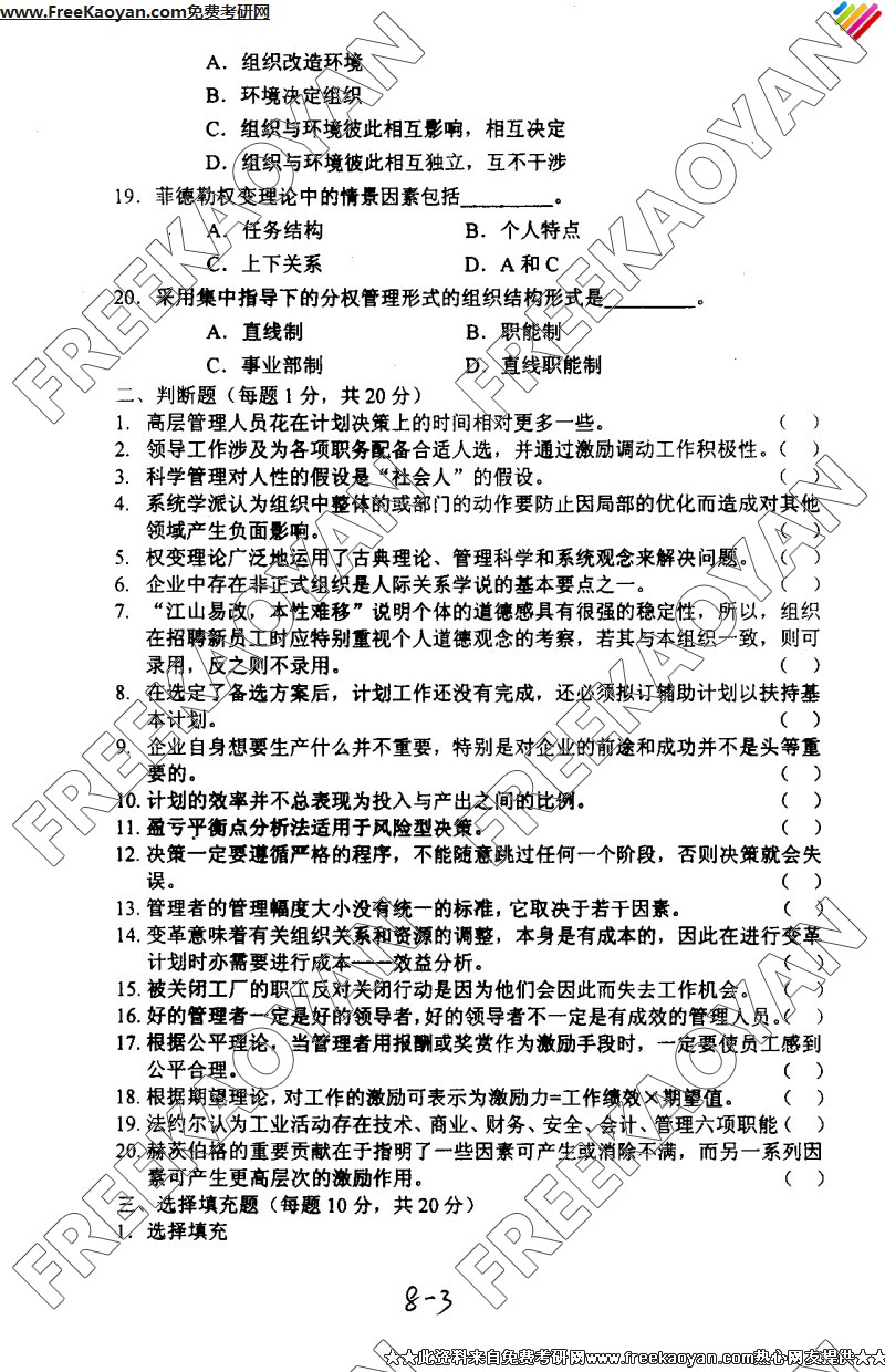 相关话题/南京理工大学 考研真题 管理学原理