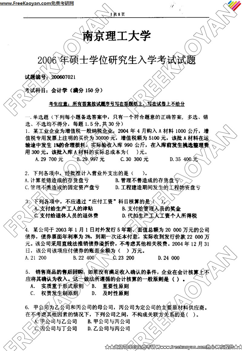 专业课考研经验 本站小编 FreeKaoyan 2018-01-23南京理工大学2006年考研真题-法学综合