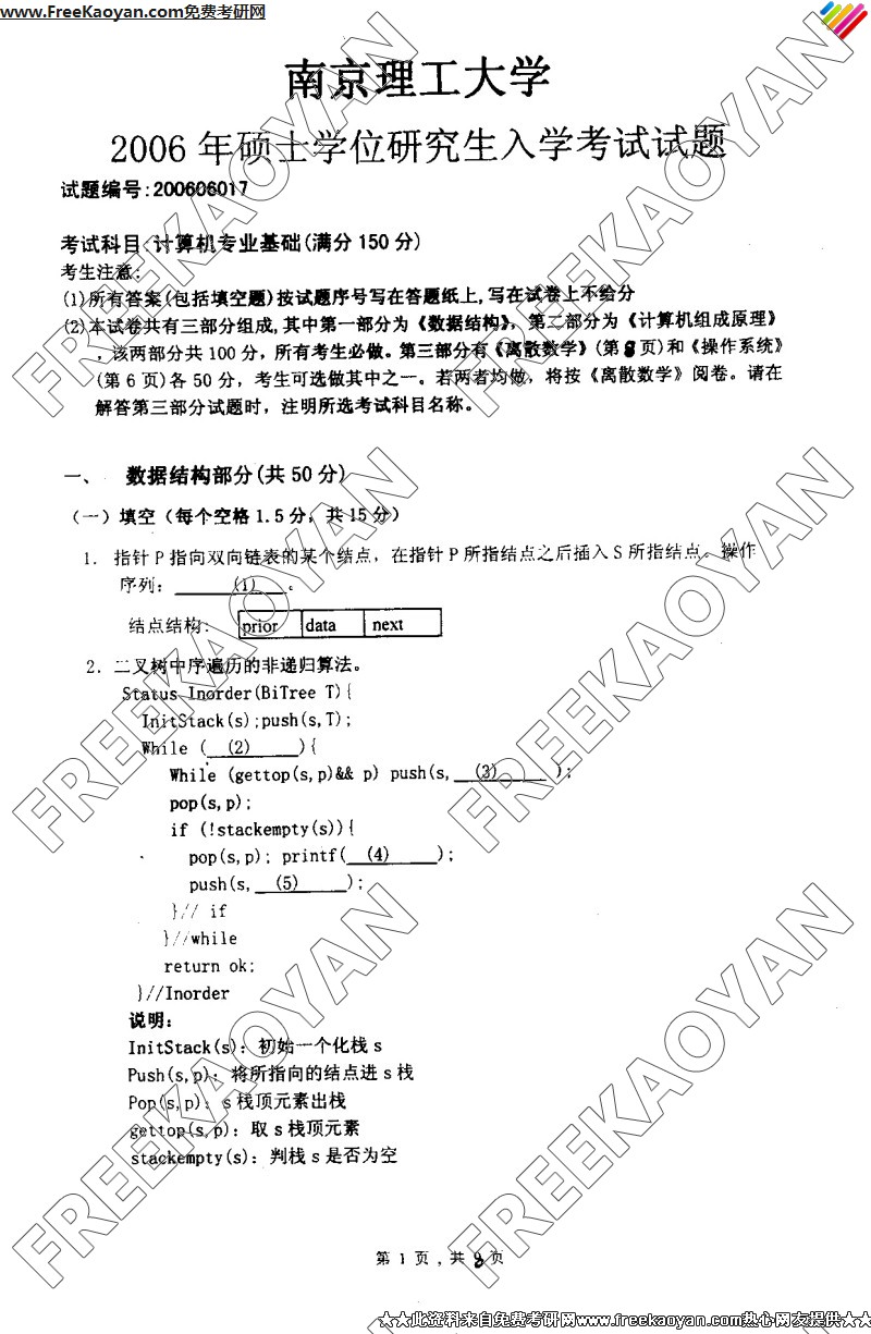 相关话题/考研真题 南京理工大学 专业基础 计算机
