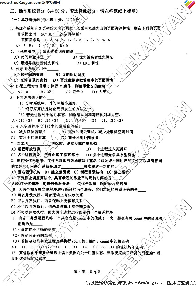 南京理工大学2006年考研真题-计算机专业基础(6)