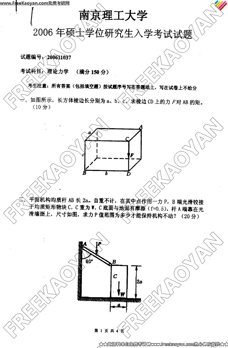 专业课考研经验 本站小编 FreeKaoyan 2018-01-23南京理工大学2006年考研真题-结构力学