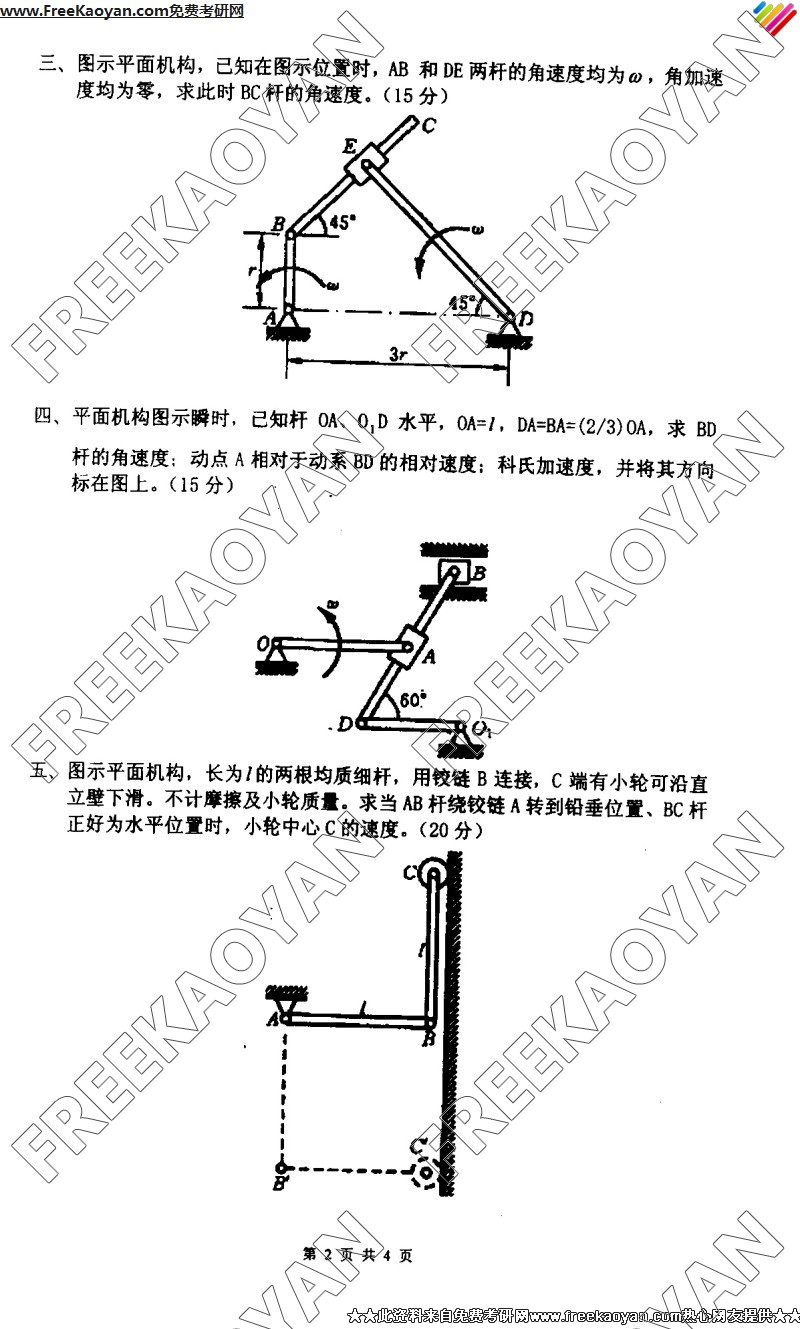 专业课考研经验 本站小编 FreeKaoyan 2018-01-23南京理工大学2006年考研真题-机械原理