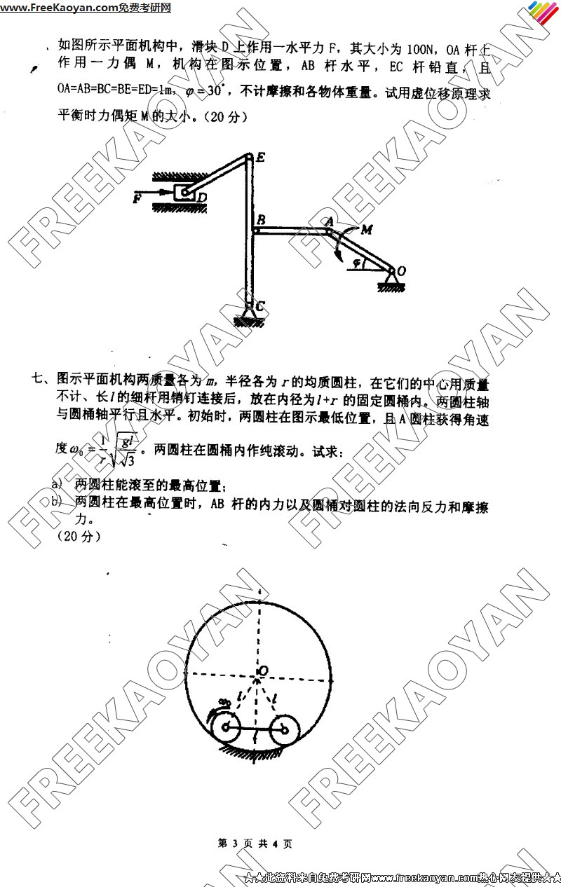 专业课考研经验 本站小编 FreeKaoyan 2018-01-23南京理工大学2006年考研真题-机械原理