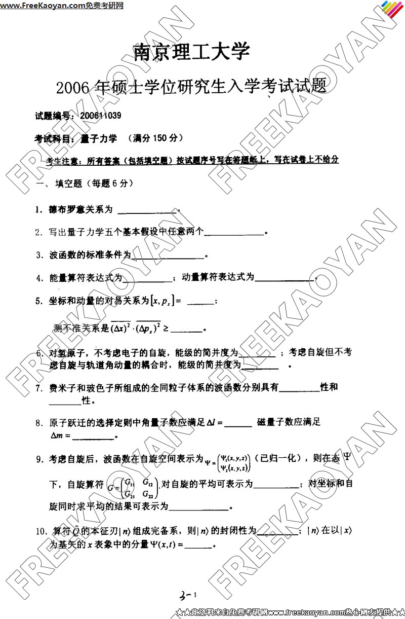 专业课考研经验 本站小编 FreeKaoyan 2018-01-23南京理工大学2006年考研真题-光学工程