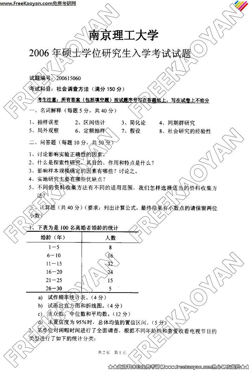 相关话题/考研真题 南京理工大学 社会调查 方法
