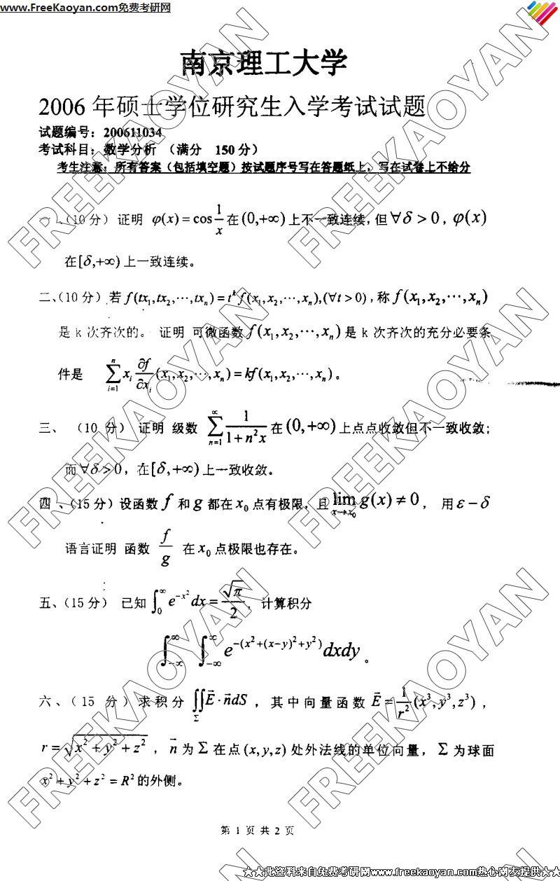 南京理工大学2006年考研真题-数学分析