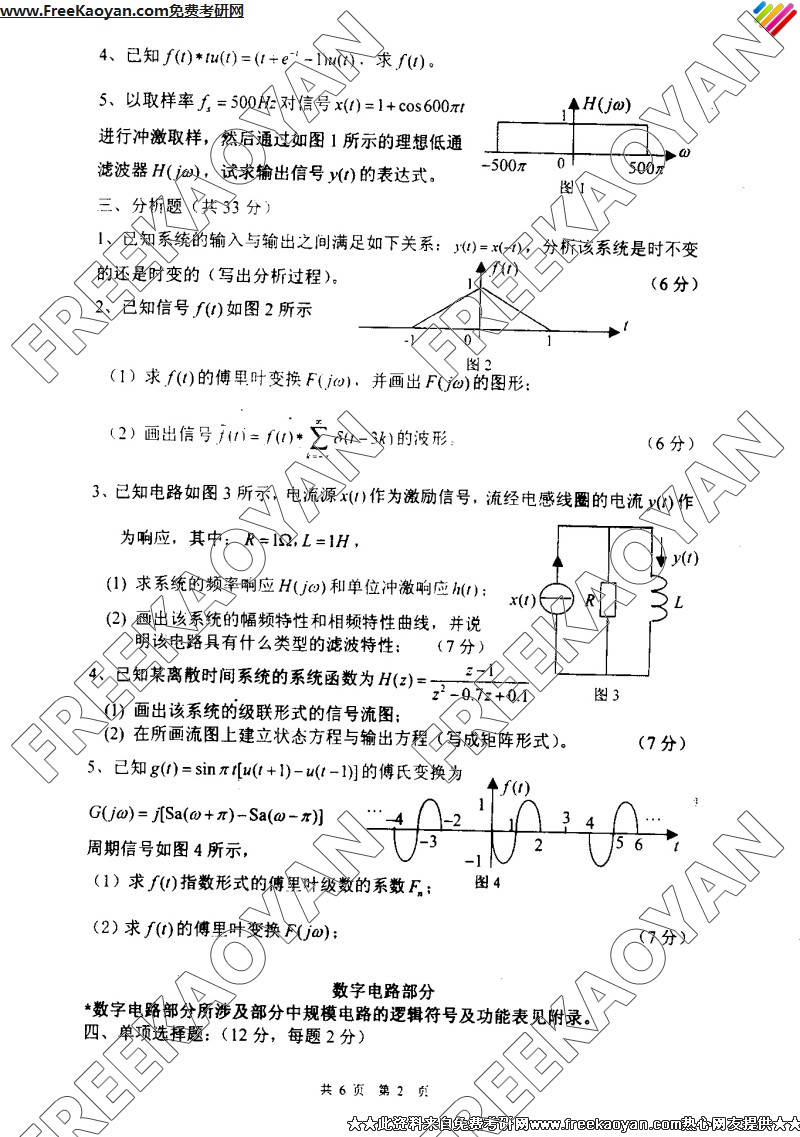 南京理工大学2006年考研真题-信号、系统与数字电路(2)