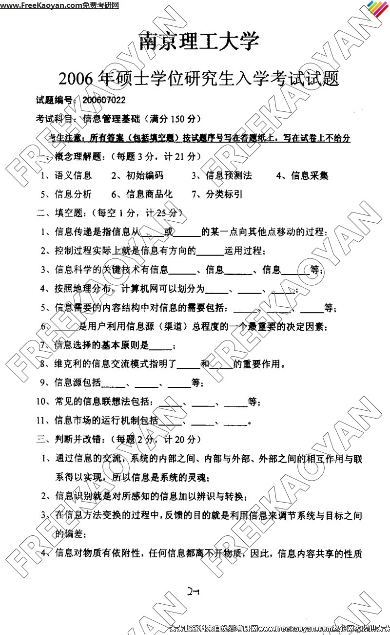 南京理工大学2006年考研真题-信息管理基础
