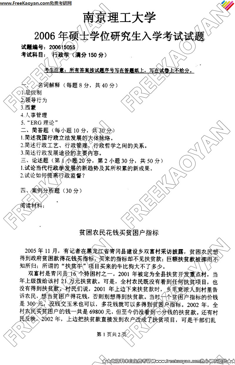 专业课考研经验 本站小编 FreeKaoyan 2018-01-23南京理工大学2006年考研真题-企业管理