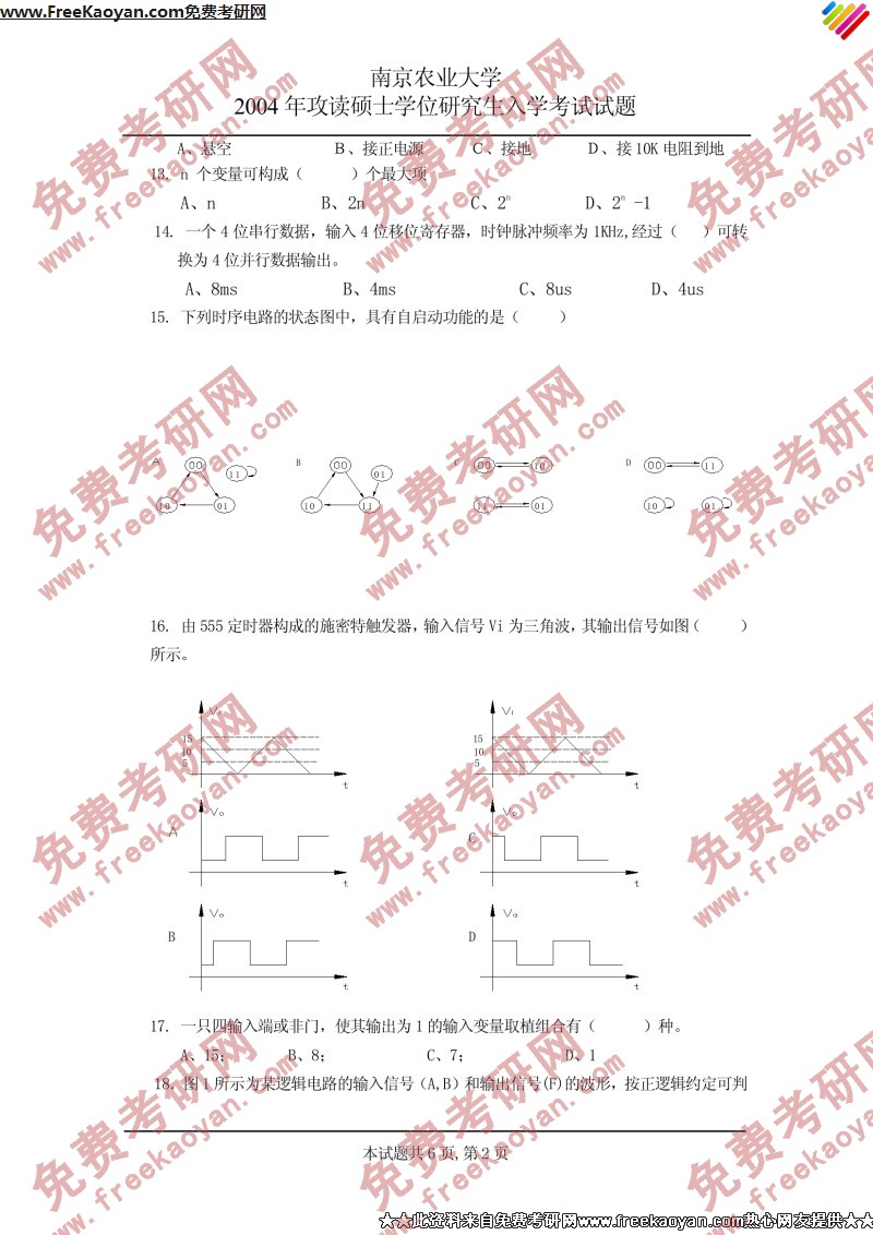 专业课考研经验 本站小编 FreeKaoyan 2018-01-23南京农业大学2004年考研真题-电路