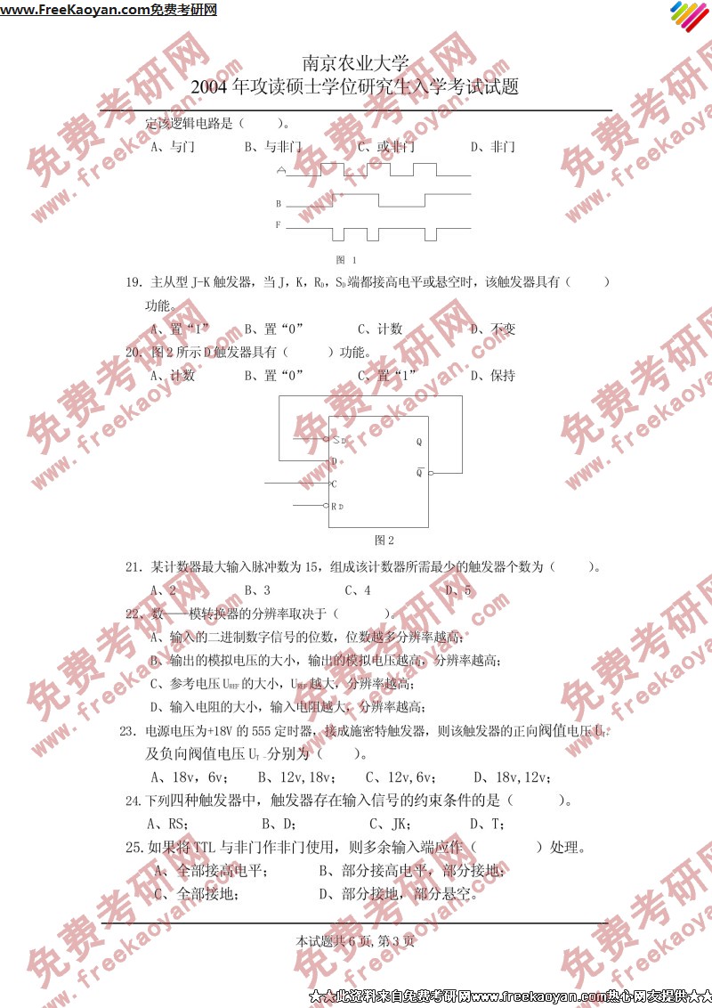 南京农业大学2004年考研真题-电子技术(3)