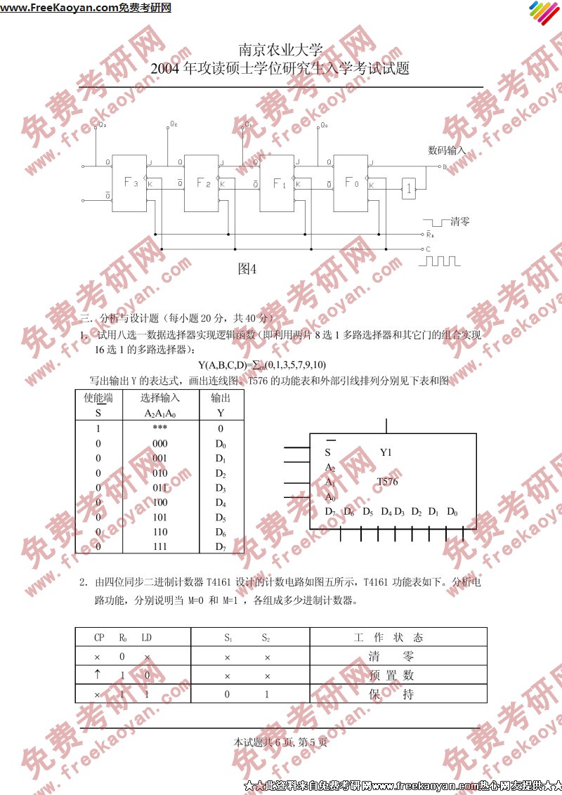专业课考研经验 本站小编 FreeKaoyan 2018-01-23南京理工大学2006年考研真题-信号、系统与数字电路