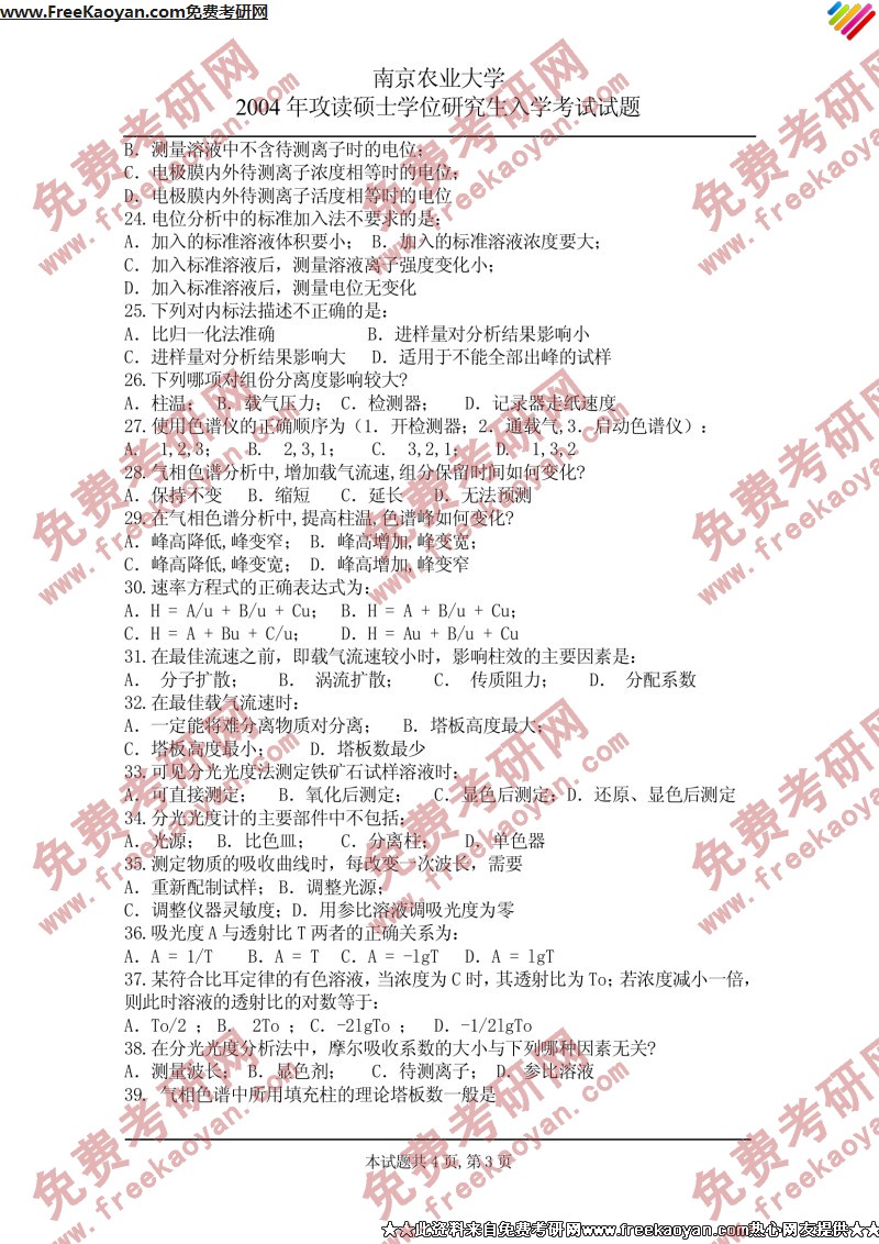 专业课考研经验 本站小编 FreeKaoyan 2018-01-23南京农业大学2004年考研真题-动物生理生化