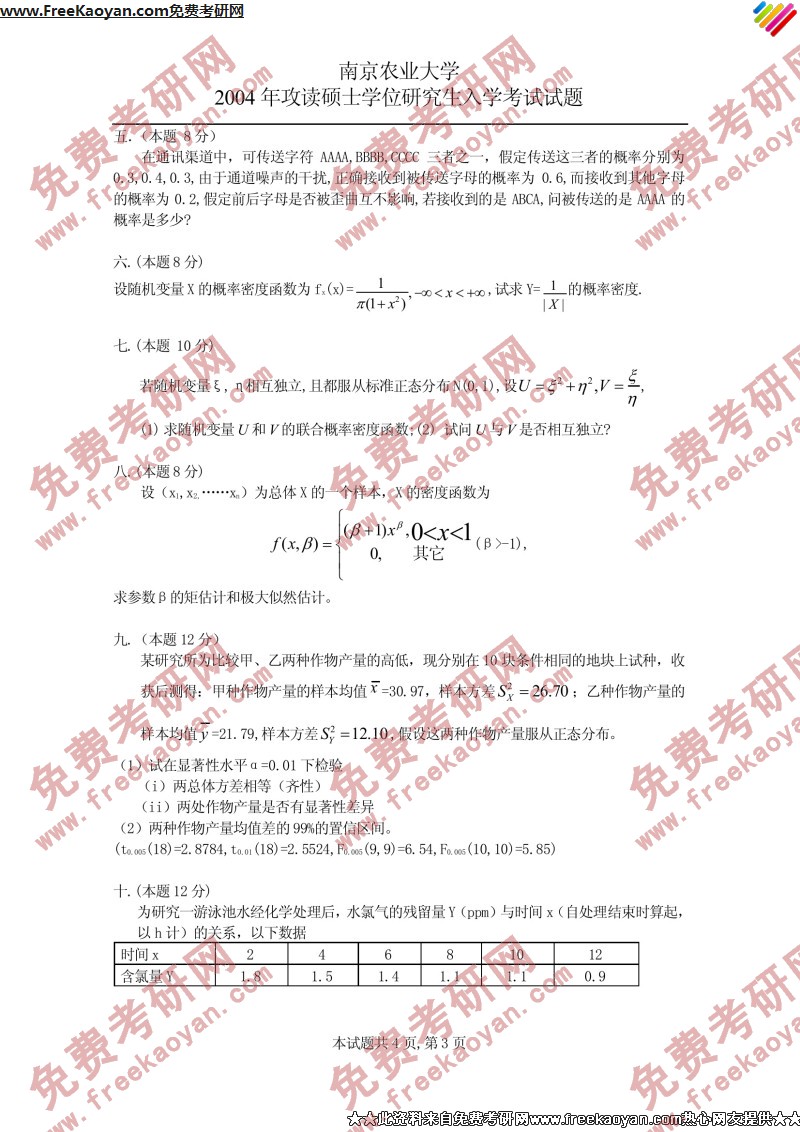 专业课考研经验 本站小编 FreeKaoyan 2018-01-23南京农业大学2004年考研真题-电子技术