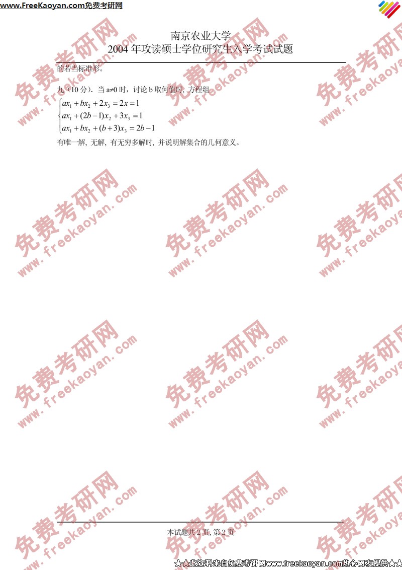 南京农业大学2004年考研真题-高等代数(2)