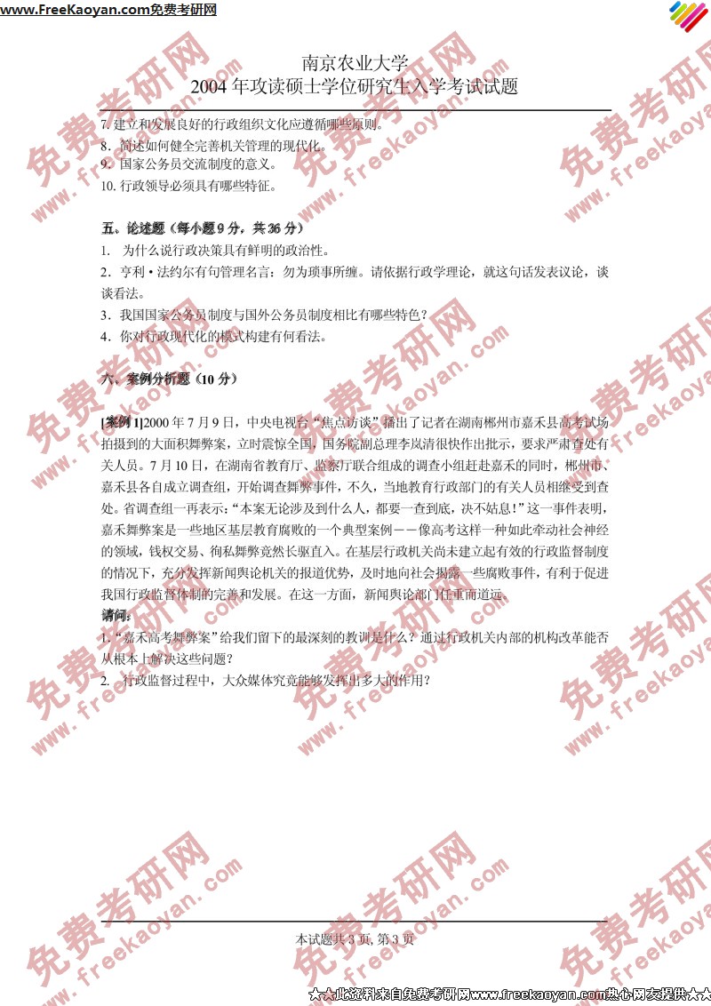 专业课考研经验 本站小编 FreeKaoyan 2018-01-23南京农业大学2004年考研真题-地理信息系统