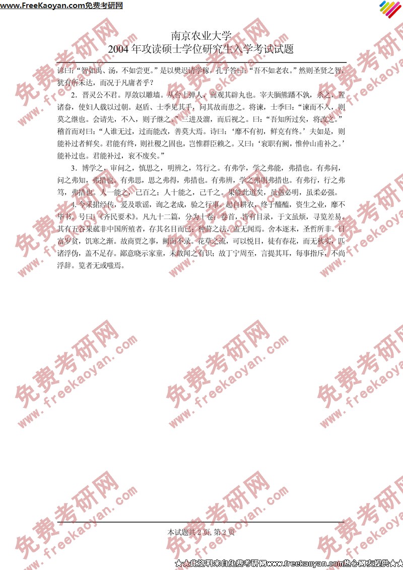 专业课考研经验 本站小编 FreeKaoyan 2018-01-23南京农业大学2004年考研真题-俄语二外