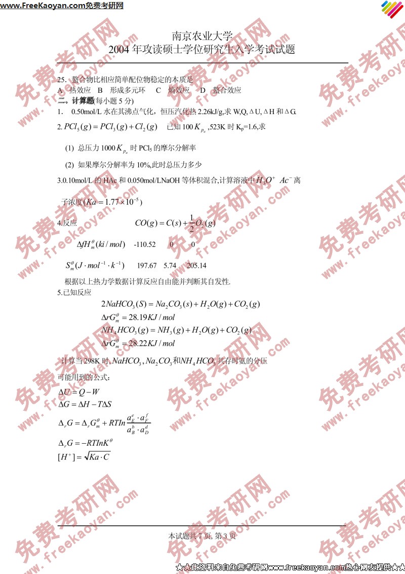 专业课考研经验 本站小编 FreeKaoyan 2018-01-23南京农业大学2004年考研真题-分析化学