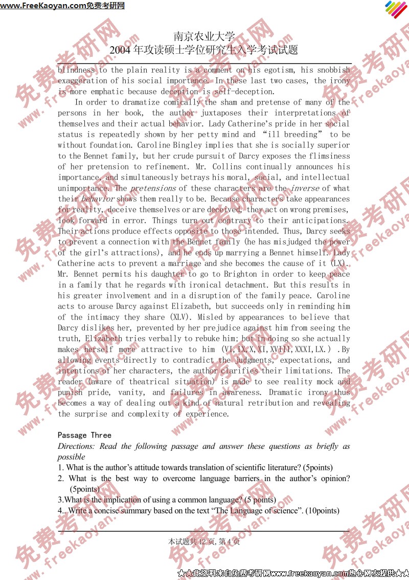 专业课考研经验 本站小编 FreeKaoyan 2018-01-23南京农业大学2004年考研真题-古代汉语