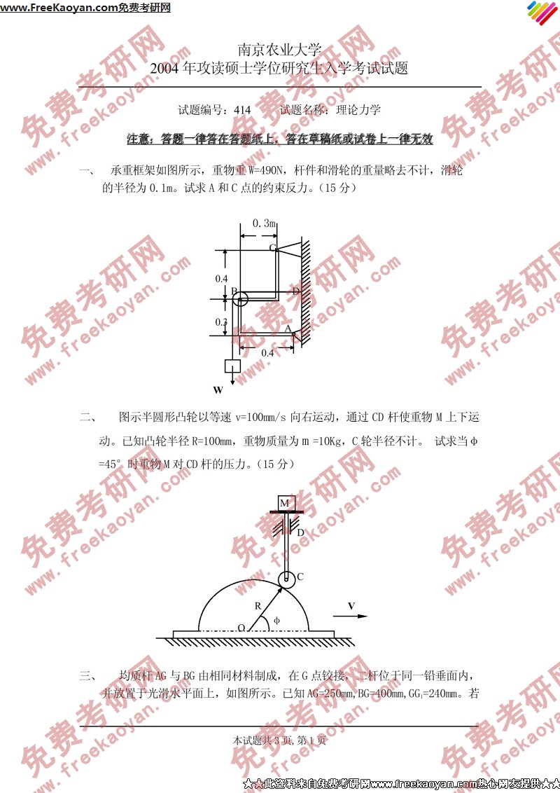 专业课考研经验 本站小编 FreeKaoyan 2018-01-23南京农业大学2004年考研真题-化学