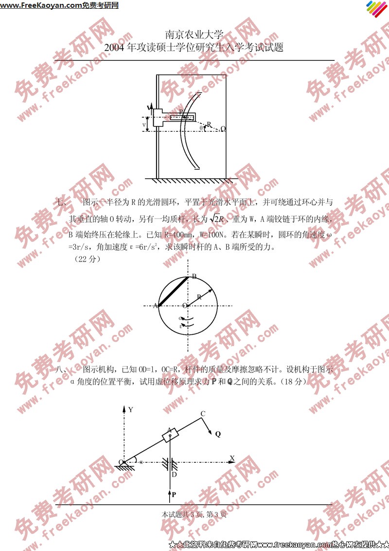 南京农业大学2004年考研真题-理论力学(3)