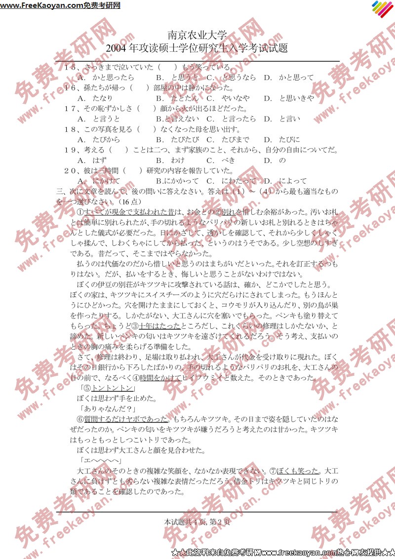 专业课考研经验 本站小编 FreeKaoyan 2018-01-23南京农业大学2004年考研真题-基础英语