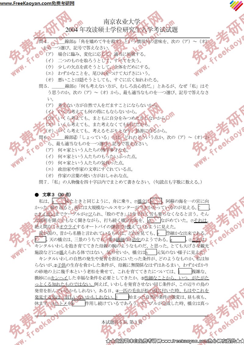 南京农业大学2004年考研真题-日语读解与写作(3)
