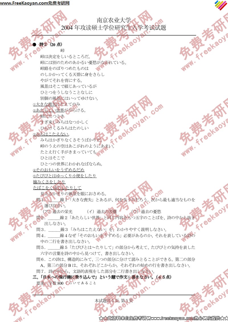 南京农业大学2004年考研真题-日语读解与写作(5)