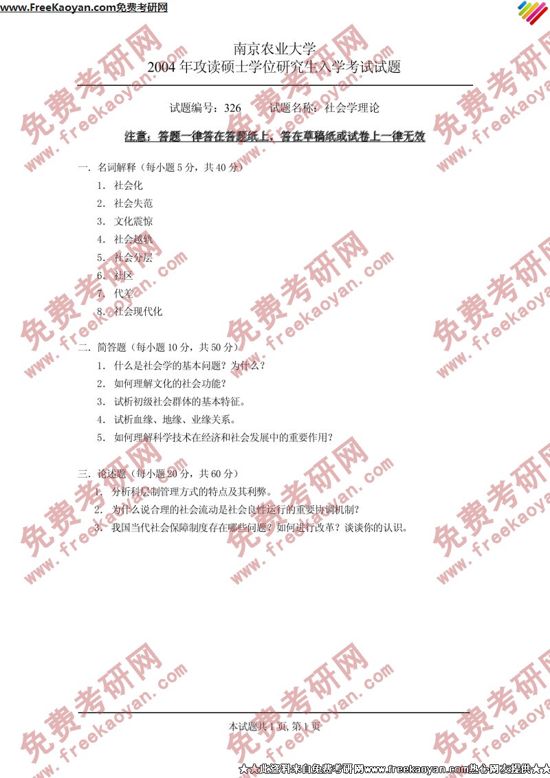 专业课考研经验 本站小编 FreeKaoyan 2018-01-23南京农业大学2004年考研真题-农业概论