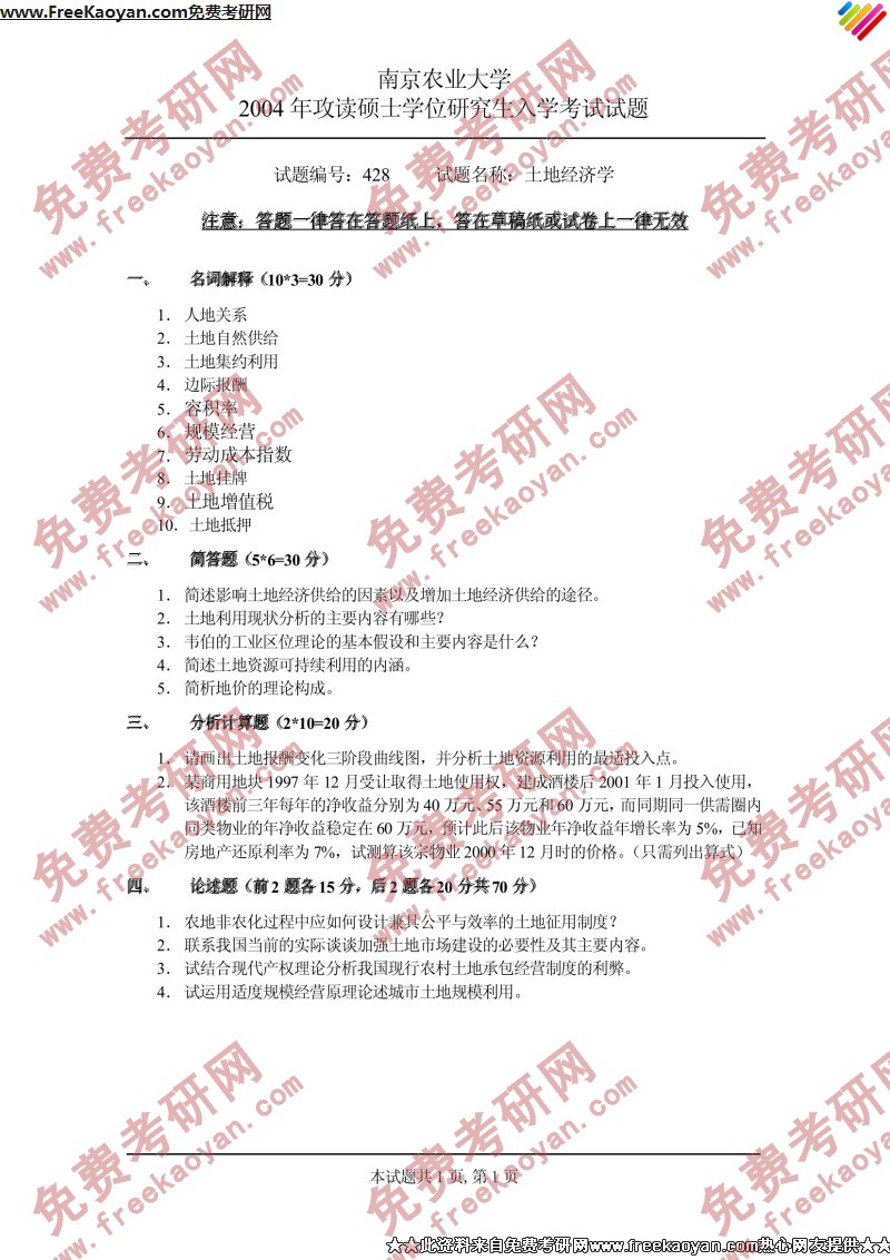 专业课考研经验 本站小编 FreeKaoyan 2018-01-23南京农业大学2004年考研真题-农业概论