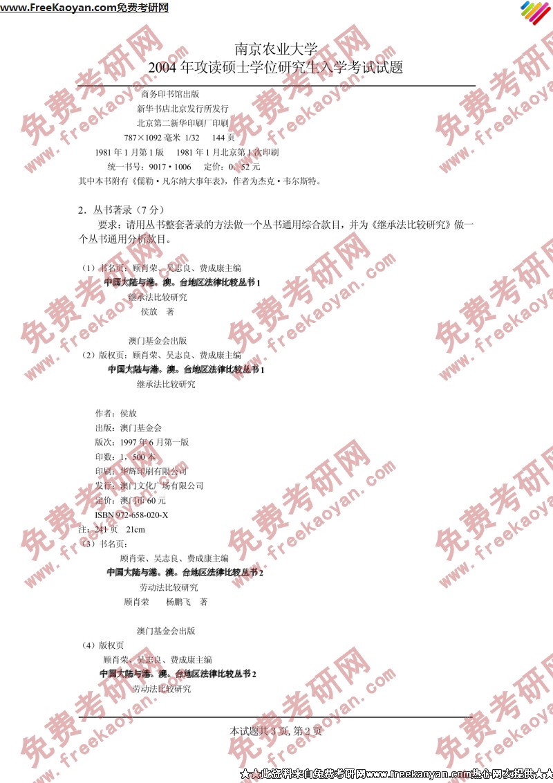 专业课考研经验 本站小编 FreeKaoyan 2018-01-23南京农业大学2004年考研真题-日语二外