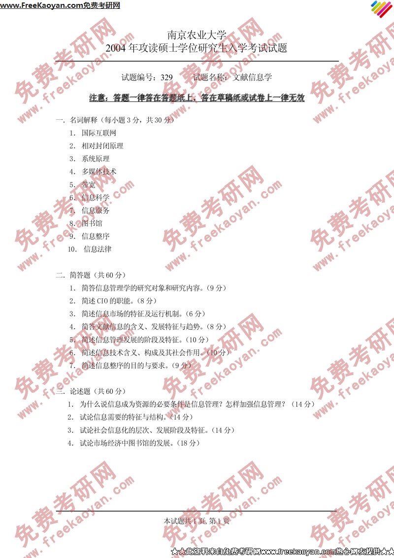 专业课考研经验 本站小编 FreeKaoyan 2018-01-23南京农业大学2004年考研真题-土壤学
