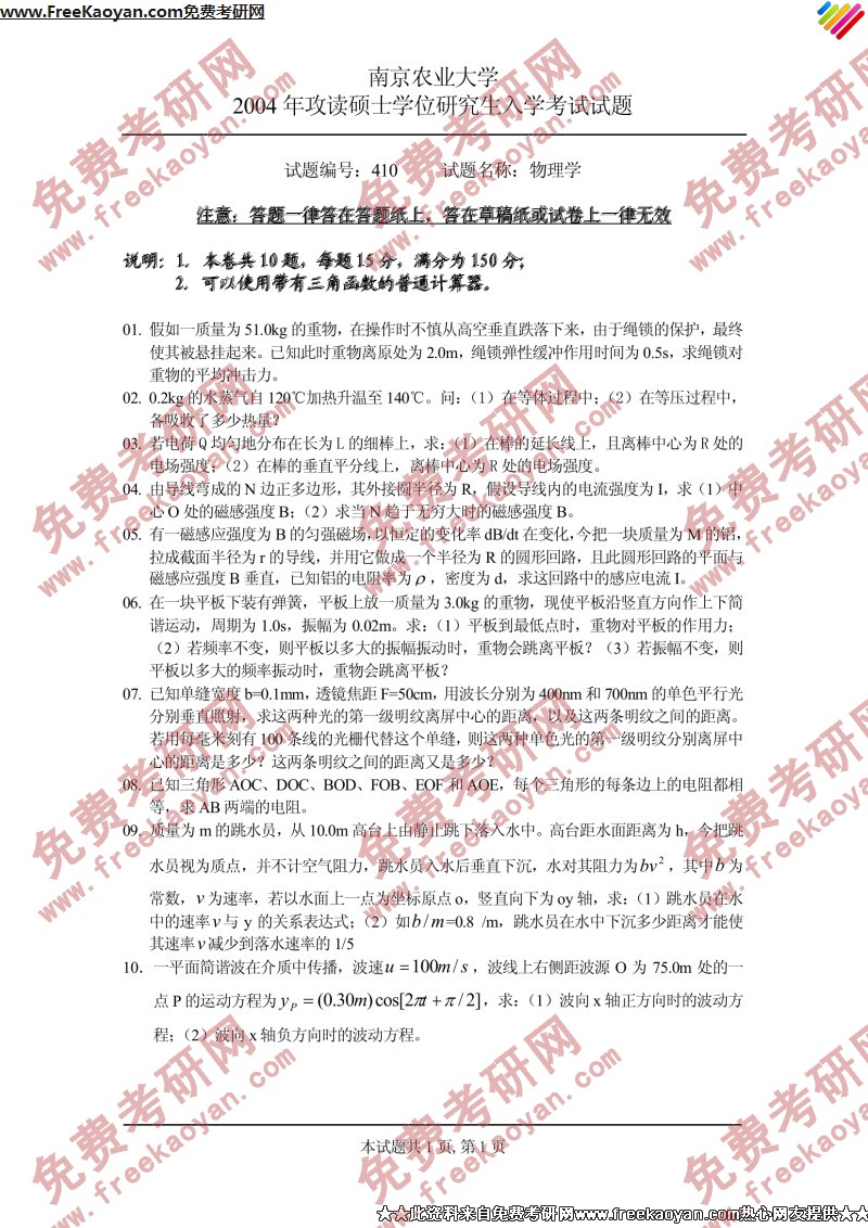 专业课考研经验 本站小编 FreeKaoyan 2018-01-23南京农业大学2004年考研真题-数学分析