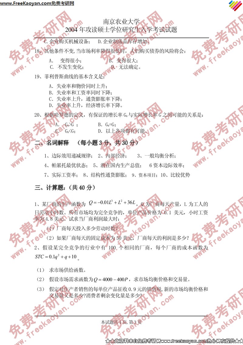 南京农业大学2004年考研真题-西方经济学(3)