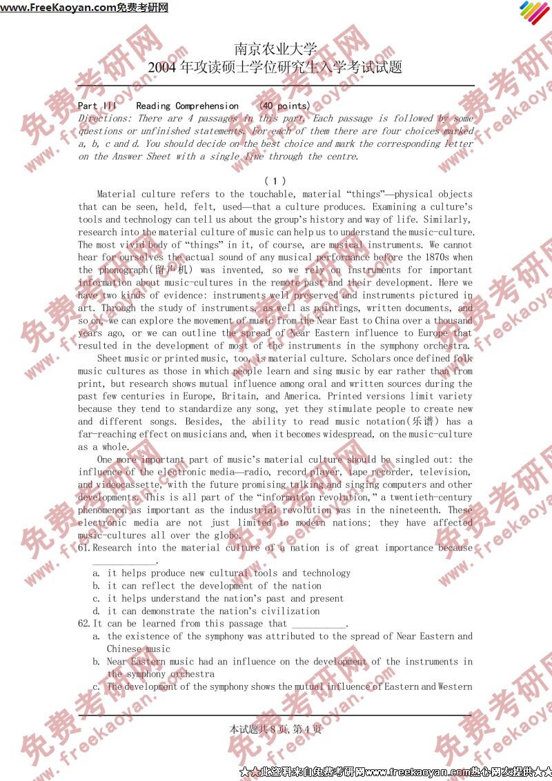 南京农业大学2004年考研真题-英语(单)(4)