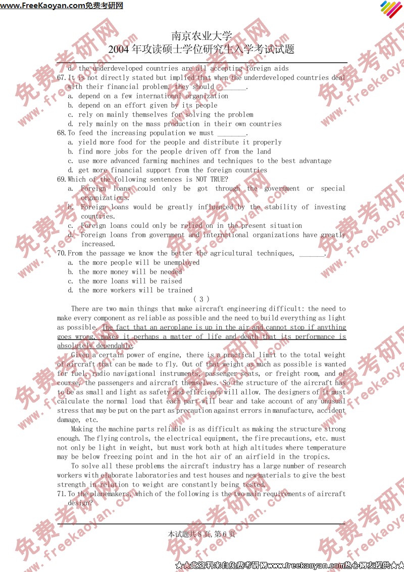 专业课考研经验 本站小编 FreeKaoyan 2018-01-23南京农业大学2004年考研真题-英汉互译