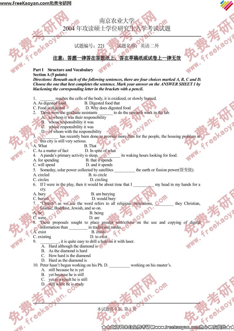 相关话题/南京农业大学 考研真题 英语