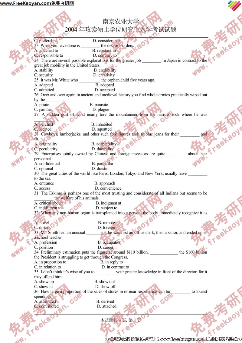 专业课考研经验 本站小编 FreeKaoyan 2018-01-23南京农业大学2004年考研真题-英汉互译
