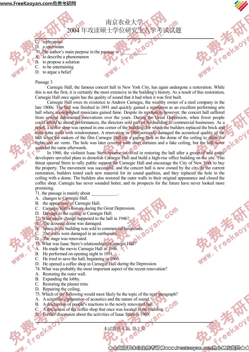 专业课考研经验 本站小编 FreeKaoyan 2018-01-23南京农业大学2004年考研真题-英汉互译
