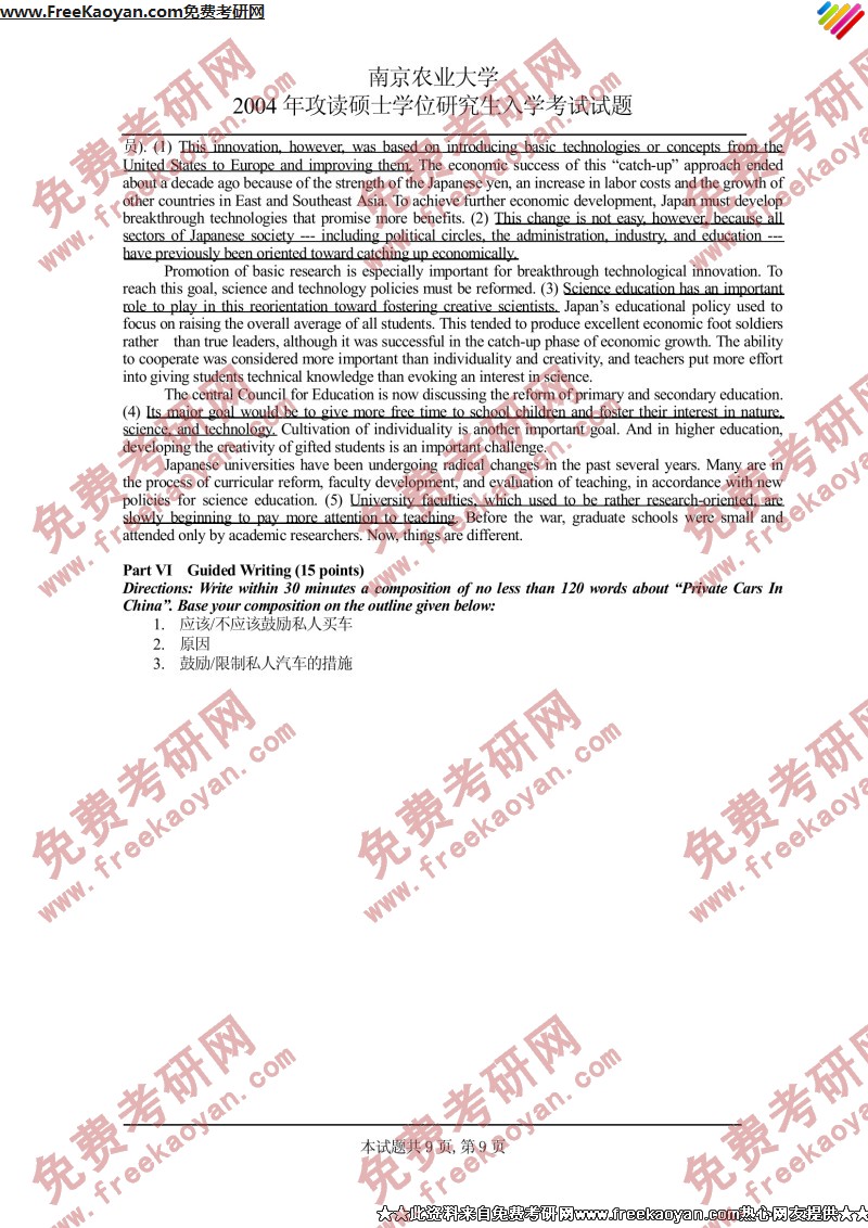 南京农业大学2004年考研真题-英语二外(9)